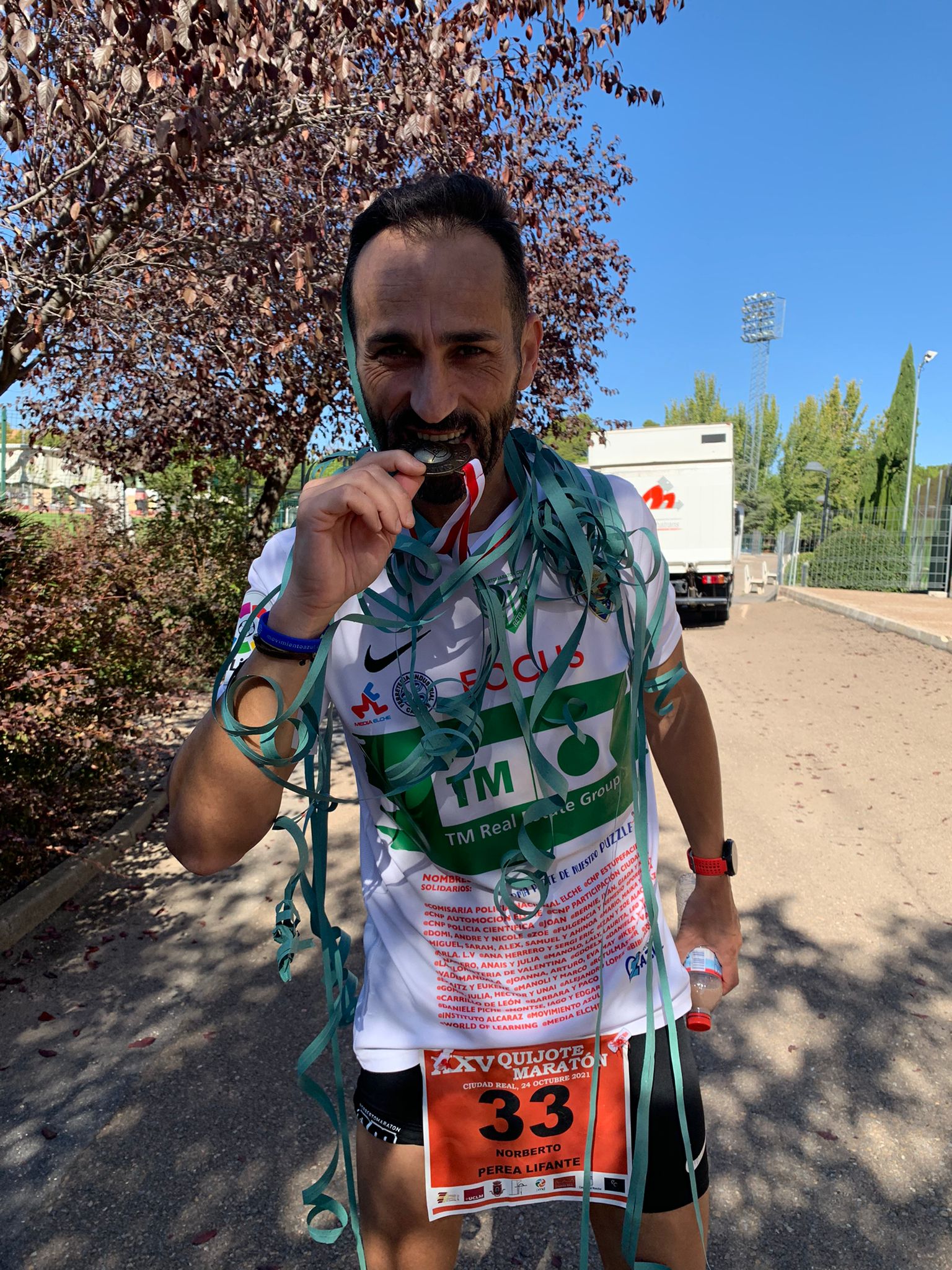 Mención especial para la Organización de la maratón de Ciudad Real. Desde el primer momento su atención para organizar la entrega de la Dama de Elche fue muy correcta y atenta. Estuve en contacto con un miembro de la organización, Javi. Él me dijo que la maratón la organizaban entre 4 amigos y las ayudas que recibían por parte de patrocinadores no eran suficientes para realizar una difusión más amplia en redes sociales y hacer todo lo que desearía.