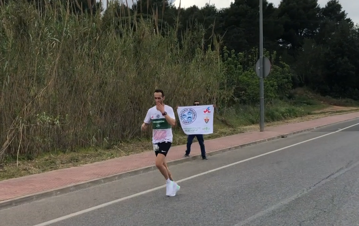 Fueron momentos de mucha confianza porque me veía muy fuerte y estaba seguro de poder hacer los siguientes 5 km a 4:25. Eso era lo que nos marcaba el plan pero también porque supuestamente era todo bajada. Ni fue todo bajada ni conseguí mantener los 4:25. Pero me traje una bonita foto en este km. Con la empresa que desde hace una año me ayuda. Por lo tanto, muy contento. Ferreteria Industrial Carrus.
