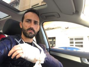 Consecuencias; rodillas magulladas y lo peor, fisura en muñeca izquierda. El médico dice 10 días sin correr mínimo. Eso sería definitivo para la Maratón de las Palmas, así que descansare 2 días y seguiremos.